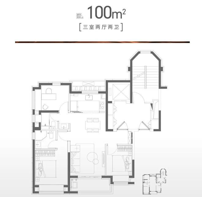 型开敞厨房,符合洗、切、炒、顾烹任流程,高厨房利用率。预留冰箱尺寸。明卫、次卫干湿分离,功能性强,满足多口之家刚性需求。