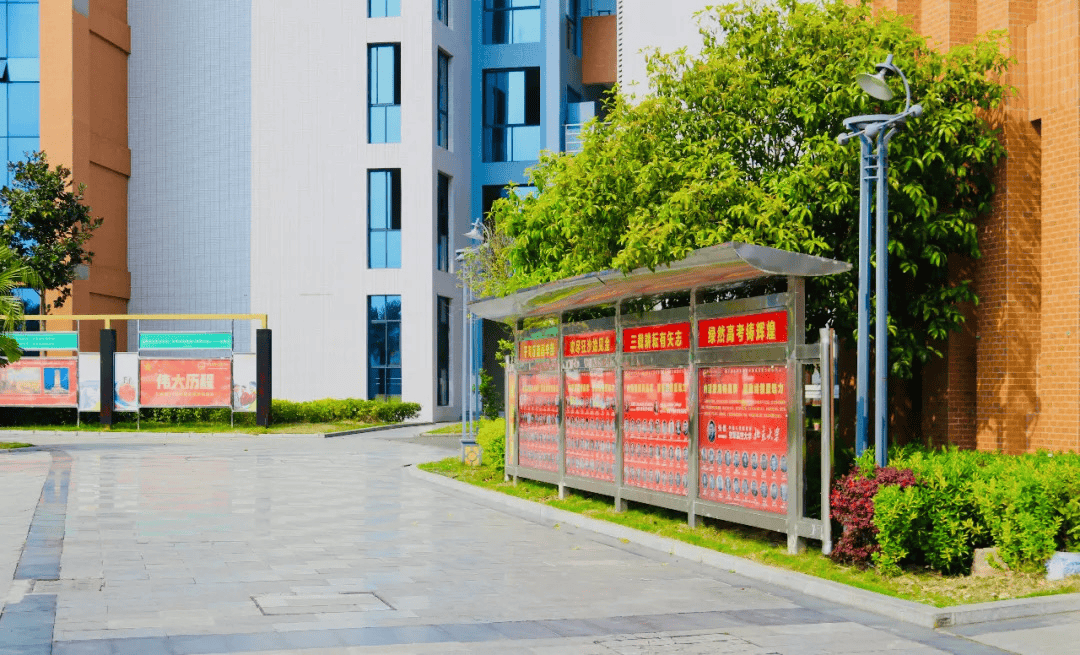学校占地近300亩,投资超4亿元。校内三公里樱花道浪漫优美,广场小径旁银杏、桂花等绿植点缀,环境宜人。教学设备先进,教室均配备多媒体,还有全省先进的同步录播室等设施。