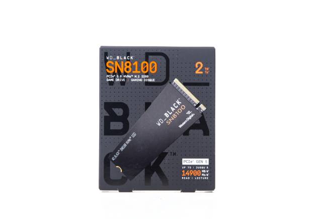 WD_BLACK SN8100沿用了上一代产品外观包装设计,整体设计以黑色为主,突显了产品的高端定位。包装正面标有产品型号“SN8100”以及存储容量“2TB”。该产品采用PCIe 5.0接口标准,支持NVMe协议,并符合M.2 2280规格。包装上突出显示了其高速度性能,读取速度可达14900 MB/s。此外,包装上还使用了“GAME DRIVE”和“GAMING DISQUE”等字样,强调了其适用于游戏玩家。